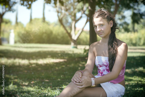 female, hair, model, girl, green, grass, spring, person, young, summer, beauty, long, woman, leisure, natural, portrait, face, outside, nature, pretty, lifestyle, cute, field, fashion, elegant, dress, caucasian, to sit, flower, sun, freedom, peace, tree, park, garden, fun, brown, teenage
