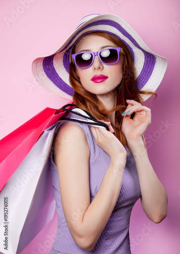 shopping, woman, sunglasses, bag, background, sale, young, isolated, person, girl, white, happy, beautiful, beauty, female, caucasian, summer, bag, fashion, dress, elegant, shopaholic, style, lady, looking, holding, colours, people, model, pink, adult, shop, cute, attractive, pretty, 1, smile, lifestyle, stylish, standing, glamour, fancy, client, purchase, shopper, purple, redhead, red-haired, hat