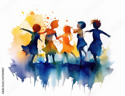 minimalist, girl, children, playing, isolated, children, day care, watercolor, watercolor, preschool, school, education, learning, play, joy, fun, youth, parenting, children, boy, girl, boy, dancing, jumping, running, joyfulness, childhood, innocence, painting, art, artwork, drawing, loose, fresh, vibrant, beautiful, happiness, happy, freedom, life, silhouette, illustration, group, family, colourful, dance, silhouette, sunset