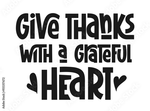 Give Thanks with a Grateful Heart Handwritten Phrase. Vector Hand Lettering Print for Thanksgiving Day Holiday. Usable for Greeting Card, Banner, Poster.