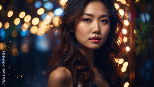 Glamorous Portrait of a Pretty Asian Woman Illuminated by LED Lights