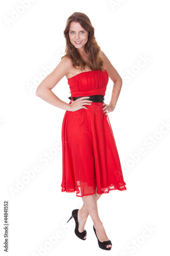 red, isolated, attractive, woman, white, background, sexy, people, happy, leg, body, hair, standing, girl, slim, lady, model, human, beauty, fashion, elegant, young, relaxed, smiling, female, person, smile, clothing, stylish, gorgeous, brunette, lovely, modern, vogue, single, pretty, 1, lifestyle, adult, beautiful, posing, sensuality, confident, style, studio