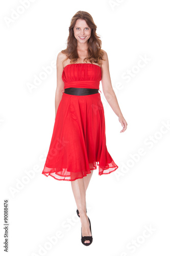 Glamorous woman in red dress