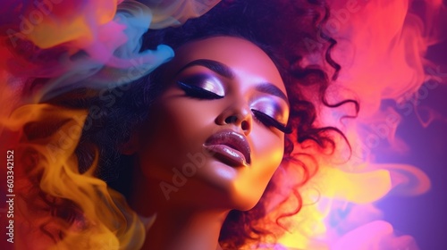 Glamorous woman with languid expression in vibrant colors neon lighting. Generative AI