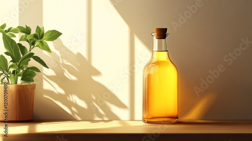 oil, bottle, glasses, sunlight, shadow, plant, wood, table, kitchen, cooking, healthy, food, drink, beverage, gold, amber, light, bright, natural, fresh, organic, product, design, background, texture, surface, still, life, home, interior, window, room, decor, elegant, simple, clean, clear, yellow, liquid, cosy, warm, mellow, shine, summer, spring, autumn, vibrant, transparent