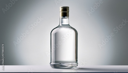 glass bottle of vodka with blank label mockup isolated on grey background for product advertising