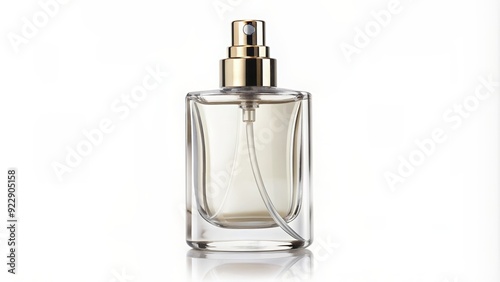 Glass bottle perfume spray isolated on white background, fragrance, scent, beauty, cosmetic, luxury, shiny, elegant, clear