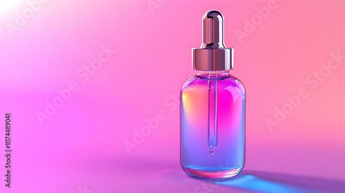 Glass Dropper Bottle on Pink Gradient 3D Illustration