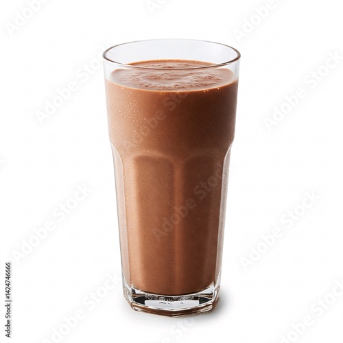 Glass of chocolate beverage, isolated on white background