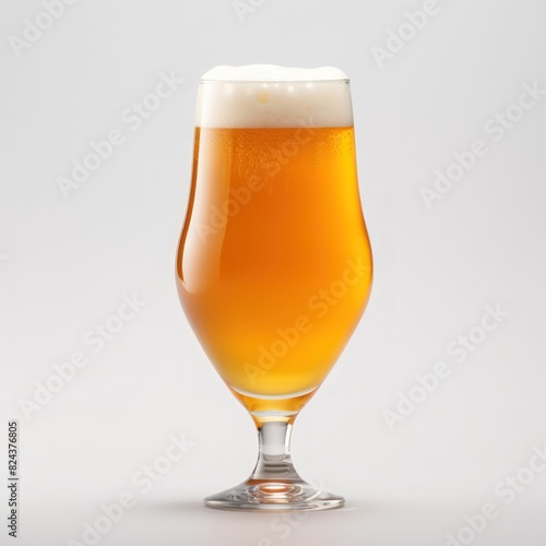 Glass of cold beer with foam and bubbles in the drink on a white background.