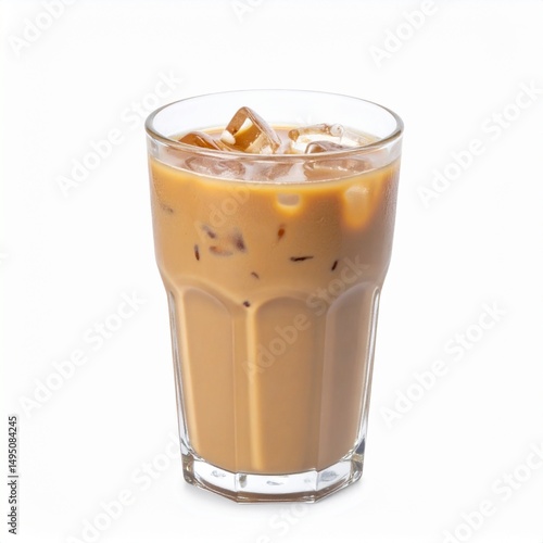 Glass of iced coffee with ice cubes isolated on white background with clipping path for cold drink or summer concept