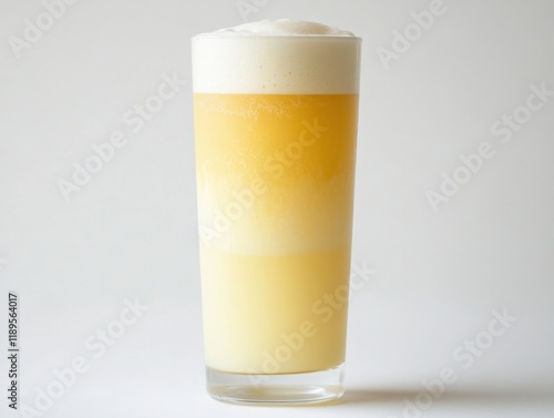 drink, glasses, yellow, layered, beverage, foam, frothy, refreshment, liquid, white, cold, tall, cup, fizzy, smoothie, cocktail, juice, light, transparent, refreshing, texture, gradation, gradient, isolated, studio, simple, clean
