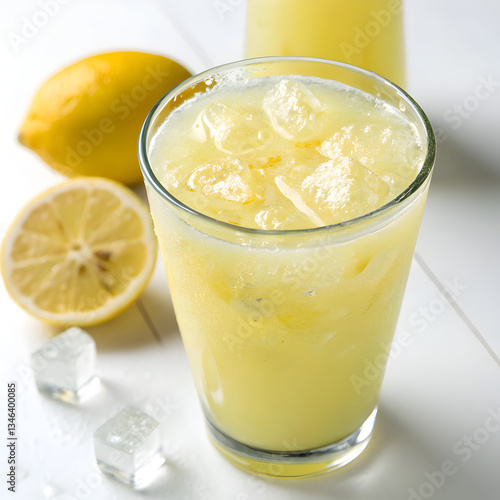 Glass of lemonade on white background