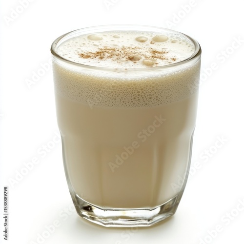 Glass of warm soy milk with a delicate froth on top and a dash of vanilla extract. isolated on transparency background
