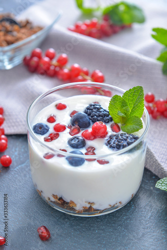 background, berry, black, blackberry, blueberry, breakfast, calcium, closeup, colours, creamy, currant, dairy, dark, dessert, diet, dietary, drink, eating, favor, food, fresh, glasses, granola, healthy, lactose, low-fat, meal, lactic, mint, napkin, natural, nobody, nourishment, oat, object, organic, product, red, snack, sweet, table, tasty, yogurt, yogurt