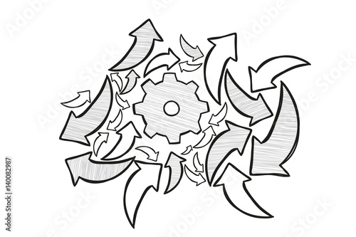 arrow, idea, concept, hand, drawn, creative, cogwheel, cog, wheel, brainstorm, business, thinks, work, opportunity, cyberspace, brainstorming, question