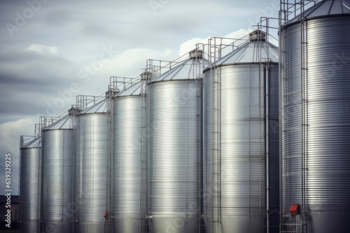 industrial, storage, stainless, steel, container, metallic, modern, facility, grain, agriculture, manufacturing, engineering, tall, vertical, bulk, cylindrical, processing, farming, seamless, reflective, hard-wearing, technology, construction, warehouse, metalwork, rural, urban, infrastructure, commercial, precision, innovation, scale, architectural, contemporary, agribusiness