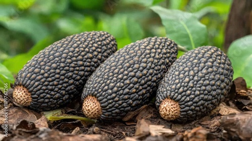 Glimpse of Konnyaku Bulbs Nestled Among Lush Greenery in a Tranquil Setting