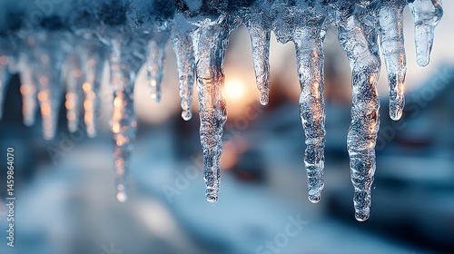 Glistening Icicle Drips Captured in Macro – Frosted Winter Visual for Seasonal Branding and Cool Refreshment Campaigns