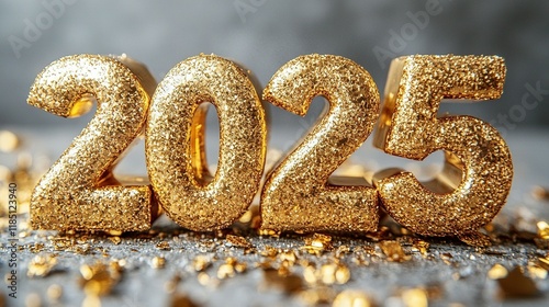 Glittering Gold Numbers Celebrate the New Year Two Thousand Twenty Five