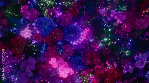 glittering, purple, floral, flower, vibrant, aglow, colourful, background, decorative, illuminated, dreamlike, dazzling, sparkling, pink, bright, magical, abstract, fantasy, arrangement, textured, beautiful, art, ornate, artistic, design, joyful, whimsical, mysterious, enchanting, dark, glowing, breathtaking, imaginative, night, visual, festive, surreal, stunning, intense, rich, luxurious, photo, dramatic, celebratory, deep