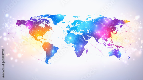 globalisation, connectivity, world map, network, cyberspace, communication, technology, digital, datum, information, global, international, collaboration, innovation, progress, future, growth, business, opportunity, abstract, design, vibrant, colourful, aglow, futuristic, concept, illustration, background, graphic, pattern, texture