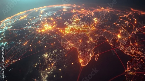 Global connectivity digital network visualization of earth technology landscape nighttime viewpoint futuristic concept