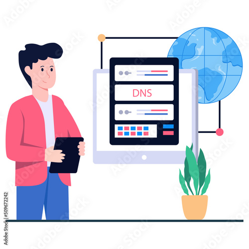 global, hosting, device, database, illustration, vector, flat, globe