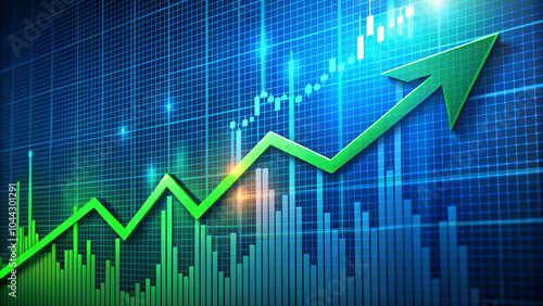 Global Economic Expansion - A visual metaphor for rising markets on a global scale.” “Financial Ascent - The upward arrow signifies prosperity amidst the digital landscape of international finance.”