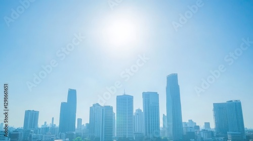 Global warming concept with high temperature heatwave affecting city in summer season. Overheated urban environment with extreme heat, climate change, and environmental impact on daily life