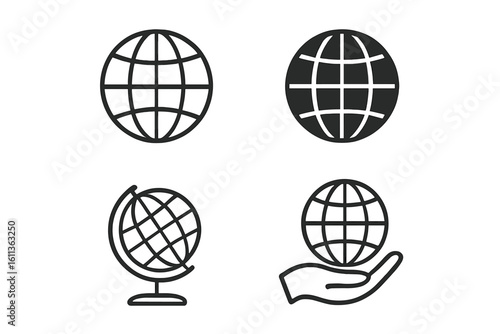 globe, earth, earth, planet, international, global, web, cyberspace, icon, set, collection, business, linear, outline, flat, design, meridian, hand, holding, vector, symbol, element, geographic, travel, worldwide, universal, communication, technology, network, connection, digital, online, website, app, interface, corporate, company, organisation, commerce, trade, geography, cartography, map, navigation, location, position, sphere, round