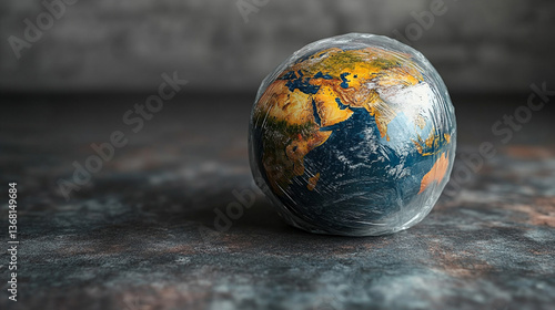 globe wrapped in a clear plastic bag symbolizes the environmental challenges Earth faces, representing the impact of pollution and the urgency for sustainable practices on Earth Day