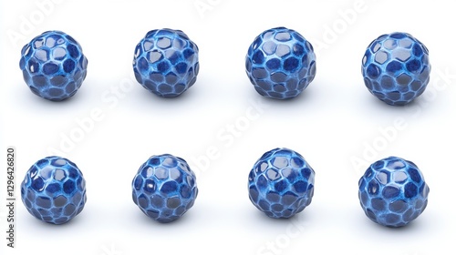 Glossy Blue Balls with Hexagonal Pattern on White Background