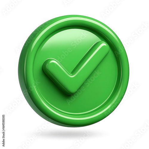 Glossy Green Check Mark Icon: 3D Render for App UI, Website Design, and Marketing Materials