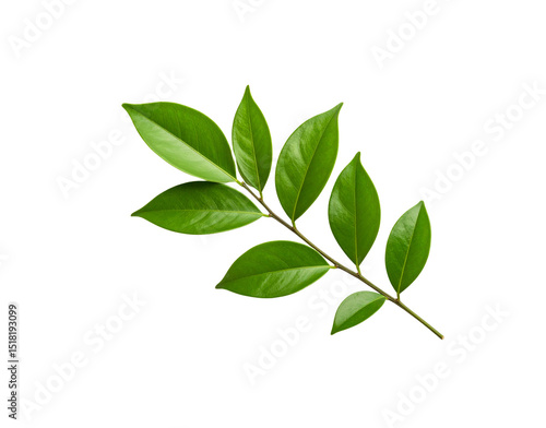 Glossy Green Leaves on a Branch Veins Visible Isolated on Transparent