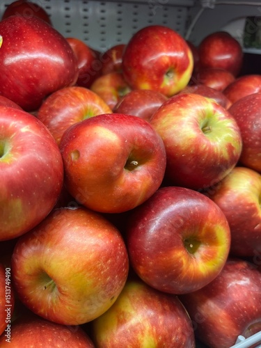 Glossy Red Apples with Yellow Hue in Fruit Display