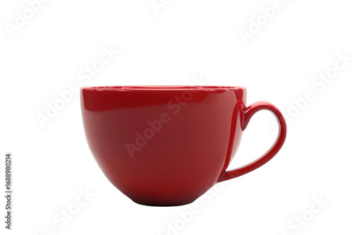 Glossy red mug with handle for tea or coffee representing stylish crockery, kitchen utility, and household essentials.