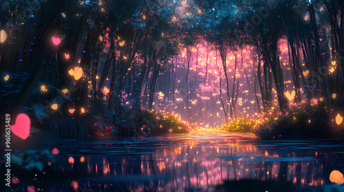 Glowin enchanted forest wonderland from generative ai. Enchanted Forest. Illustration