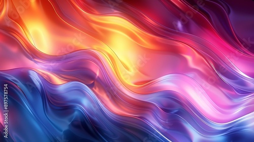 Glowing abstract background with vibrant, neon hues and a glossy, reflective surface that creates a resplendent and eye-catching visual experience. Watercolor style, high resolution Illustration, in