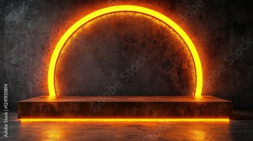 archway, stage, concrete, glowing, product, display, background, neon, light, orange, presentation, platform, showcase, studio, design, texture, modern, abstract, dark, industrial, minimal, empty, scene, advertising, marketing, branding, technology, futuristic, elegant, luxury, stylish, space, interior, wall, floor, metallic, illumination, ambient, atmosphere, graphic