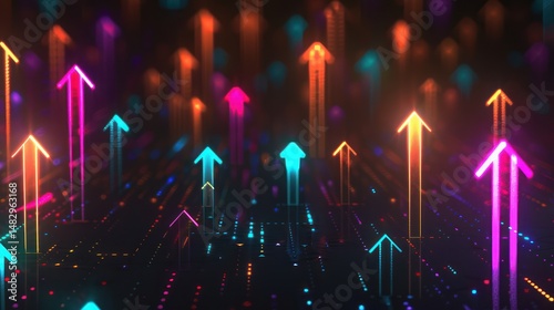 Glowing arrows ascending upwards, conveying growth and progress. Bright, colorful streaks