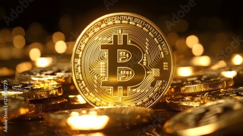Glowing Bitcoin Stacks with Global Financial Market Elements Representing Investment in Cryptocurrency Background Economic Growth Digital currency blockchain technology