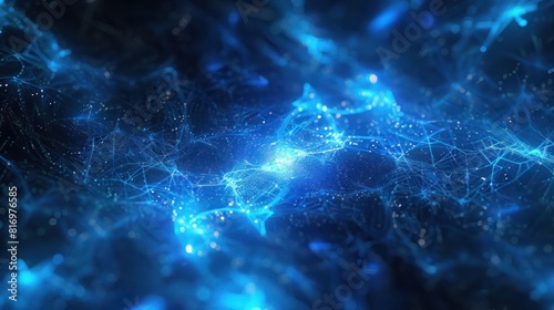 glowing blue abstract background with intricate geometric patterns and a sense of depth.