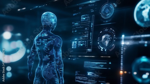 digital, human, futuristic, medicals, datum, technology, glowing, blue, screen, chart, dark, background, particle, effect, interface, hologram, abstract, science, medicine, health care, innovation, artificial, intelligence, visualisation, anatomy, body, three-dimensional, model, computer, graphic, art, virtual, reality, analysis, health, concept, research, modern, transformation, scientific, future, tech, imaging