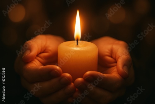 Glowing candle flame held in cupped hands warmth and hope symbolic spiritual light in darkness