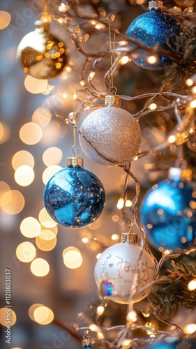string, christmas, garland, ball, holiday, festive, celebration, decoration, glowing, warm, white, dark, blue, background, bokeh, magic, sparkle, illuminated, decorative, silver, leaf, winter, new, year, party, event, seasonal, mood, ambience, cosy, inviting, elegant, romantic, design, copy, space, vertical, close, up, light, illumination, electricity, power, energy, beauty, inspiration, season