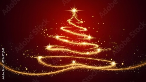 christmas, tree, glowing, gold, light, red, sparkle, holiday, background, festive, design, abstract, bright, new year, magic, shine, star, celebration, winter, night, christmas, glistering, elegant, aglow, digital, swirl, energy