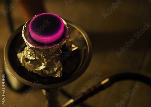 glowing, burnt, coal, hookah, aluminium, smoking, relaxation, pleasure, isolated, light, violet, magenta, tobacco, tube, arabic, aroma, ceramic, colours, dark, hookah, equipment, turkish, hookah, traditional, hookah