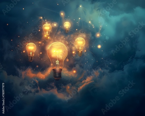 idea, concept, differentiation, creativity, imagination, innovation, vision, light, bulb, cloud, sky, glow, glowing, energy, potential, breakthrough, discovery, nirvana, ingenuity, intelligence, solution, technology, abstract, surreal, fantasy, dreamlike, mystical, aethereal, brainstorming, innovative