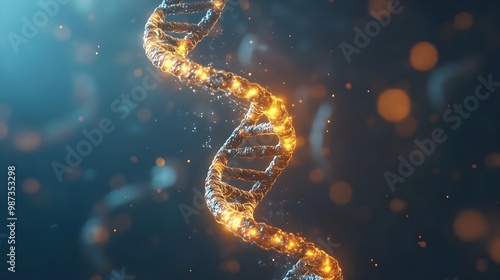 Glowing DNA strand with sparkling effects